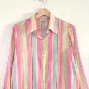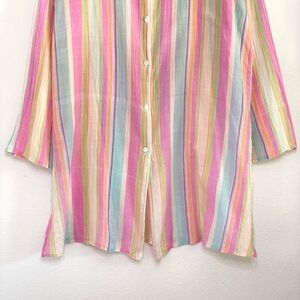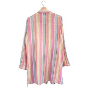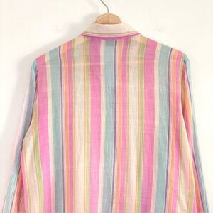 Fisico Long Sleeve Tunic Shirt Cotton Gauze Colorful Stripe Button Up Large