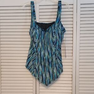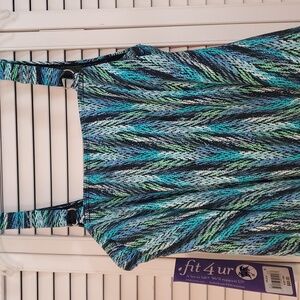 New with Tags Stylish Fit 4 U tankini top with a blue and green pattern. Perfect for beach or pool day!