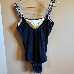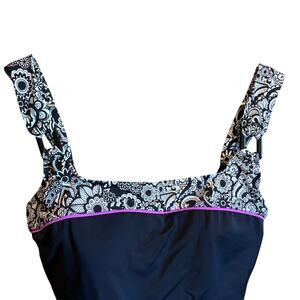 Fit 4 U One Piece Swimsuit Black Pink Navy Floral Size 14