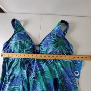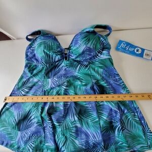 NWT Fit 4 U One-piece Swimsuit Size 18W Leaf Print Tropical. "Fit 4 Ur Thighs" style swimsuit.