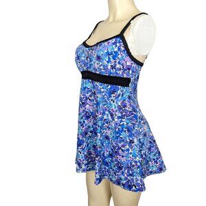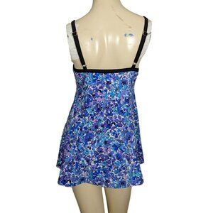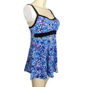 Fit 4 U Swim Dress Skirt Size 8 Blue Black Floral Adjustable Straps