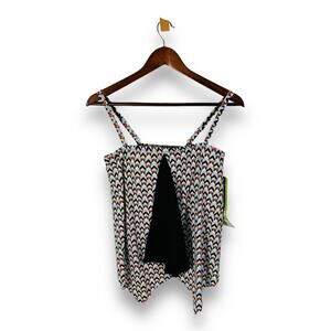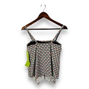Fit 4 U Tankini Top Geo Print Bandeau Handkerchief Tummy Control NWT