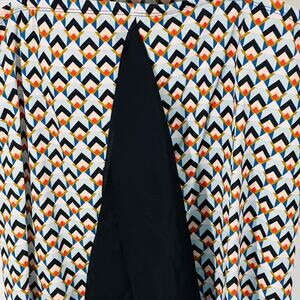 Geomatic Bandeau handkerchief top is perfectly Fit 4 ur Tummy! A bandeau neckline fits the bust beautifully for all sizes. Sewn in soft cups in our wrap around bra adds support. This unique design with angular lines and a fun vertical swoosh of contrast are cut in a way to hide the midsection in a flattering way. Adjustable straps allow you to fit this style perfectly 4 U.