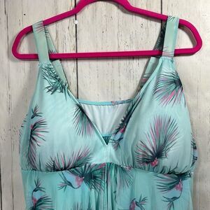 Fit 4 U Womens Plus Floral Print Mesh Splicing Blue Green One Piece Swimsuit