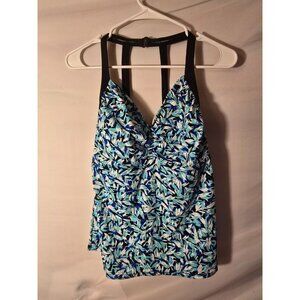 Fit 4 U Womens Swimsuit Top Only Tankini Size 14 Large Blue Built in Bra