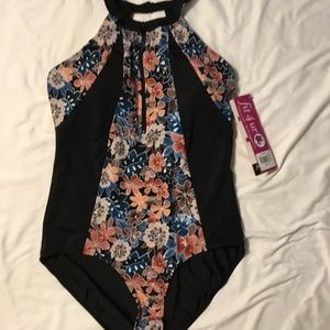 The Victoria Hi-Neck Zip 1 piece is perfectly Fit 4 Ur C's and D's! Designed to cleverly draw the eye to the shoulders balancing fuller hips. The high neck offers contemporary styling with a sexy twist. This silhouette features placed panels that instantly slim. In addition, the unique back detail with neck hook closure lifts the bust. Excellent for swimming, sports, and water aerobics. Soft cups. Tummy control. Moderate coverage and leg line.