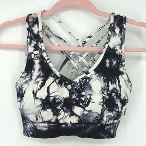 Fit Booty Tie Die Black White Sports Bra Criss-Cross Straps Medium