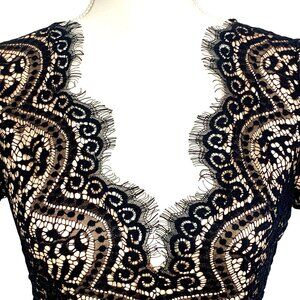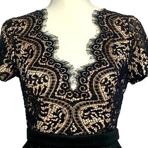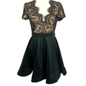 Fit & Flare Black Scallop Lace Mini Cocktail Dress Plunging Back Size M Windsor