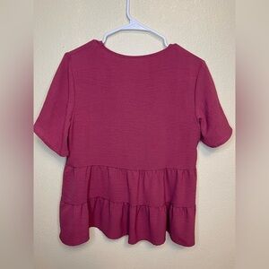 Brand new never worn blush blouse! V neck with 3 tier flare design! Size M & lightweight fabric!