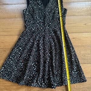 Fit & Flare Knee Length Scalloped V Neck Dress Splatter Black SZ 12 Skater