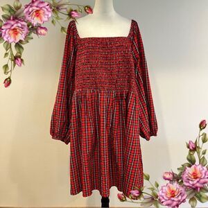 Fit & Flare Long-Sleeve Mini Plaid plus size Dress
