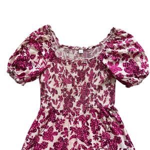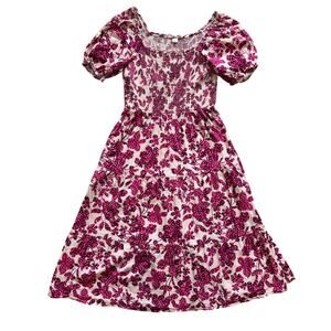 Fit & Flare Puff Sleeve Tiered Floral Midi Dress Sz M Pink Coquette Cottagecore