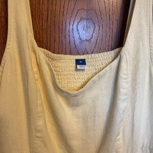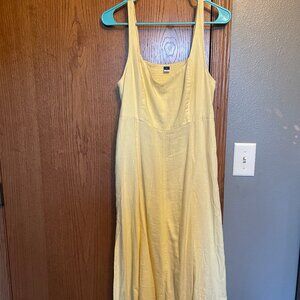 Butter yellow. Sweetheart neckline. Hits mid-calf. Pockets. Smocked back. Worn once.