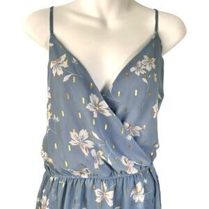 Fit & Flare Swiftie Dress Large Blue Gold Floral Lined Sleeveless Coquette Flirt