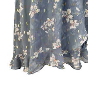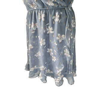 Fit & Flare Swiftie Dress Large Blue Gold Floral Lined Sleeveless Coquette Flirty