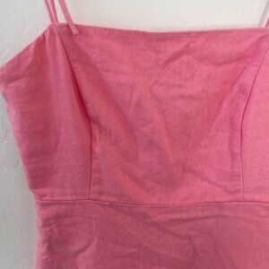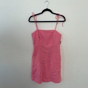 Tie-shoulder straps. Seamed through front, with smocked back. On-seam hip pockets. Flared mini-length skirt. Garment-washed linen/rayon-blend, with all-over floral print. The fit & flare dress, our go-to for a va-va-voom shape that looks great on everybody, everywhere. Prepare for compliments l