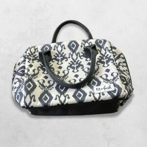 Fit & Fresh Bloomington Lunch Bag Double Handle Zip Ikat Charcoal Gray Cream OS