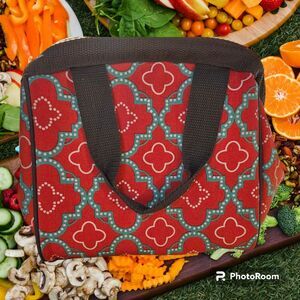 Fit & Fresh Coral and Teal Zip Top Insulated Lunch Tote Bag