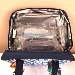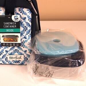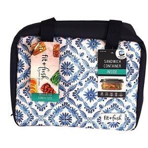 New With Tags! Lunchtime experience with the Fit + Fresh Insulated Lunch Tote, featuring a stylish blue and white pattern that adds a touch of elegance to your day. This practical bag comes equipped with a durable handle for easy carrying, ensuring comfort on the go. With its insulated design, it keeps your meals fresh and cool, while the included ice pack and sandwich container make packing a breeze. Perfect for work, school, or picnics, this tote combines functionality with chic style, making it a must-have accessory for anyone who values both convenience and aesthetics all at a fraction of the retail price! Easy Clean and PVC FREE