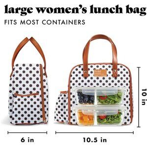 🧿SPACIOUS WOMENS LUNCH BOX - Measures 10.5"L x 10"H x 6"W, our durable stain resistant large lunch bag offers a roomy interior for multiple containers. Easy to clean, it features a wide front opening for effortless access to your meals and snacks.
