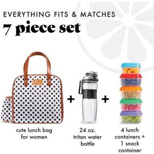 🧿INCLUDES MATCHING BOTTLE AND FIVE CONTAINERS - Our adult lunch box comes with a matching bottle and five 1 cup containers and features two straps, a bottle pocket, and a secure zipper closure for convenience and style.