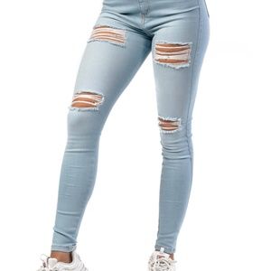 Fit Jeans 4 Hole Ripped High Waisted Jeans VINTAGE BLUE Size Small