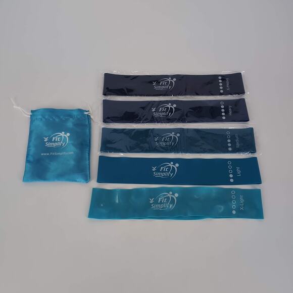 Fit Simplify Blue Resistance Loop Exercise Bands with Carry Bag, Set of 5 - GUC