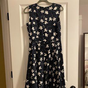 Lovely fit and flare dress that works for going to the office or dinner with friends. The color is navy with white flowers. Flattering since the skirt hides a large bottom (wait, why hide that??).