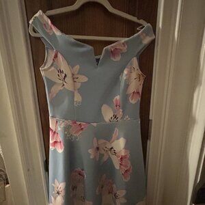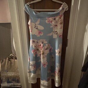 Fit and Flare Floral Bright Blue Dress Pre Owned Excellent Condition