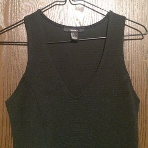 Black stretch fabric with a rib knit. Deep v-neckline. Flattering curved seams. Only worn once!