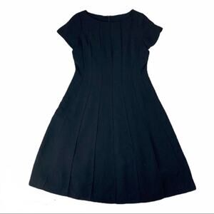 JS Collections new fit & flare little black dress ladies size 10. New without tags. Measurements available below. Perfect capsule wardrobe piece. Great for the office with or without a blazer or add some elegant accessories to transition into classy evening dress. Features include: Short cap sleeves, Round neck, raised seam panel detail from neck to hem all around dress, fully lined, Hidden back zipper with hook & eye closure. Figure flattering fit & flare styling. Polyester with acetate lining.