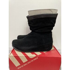 Fit flop crush boot black suede with black leather women's 8M wobble board NIB