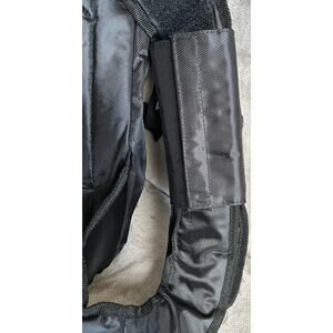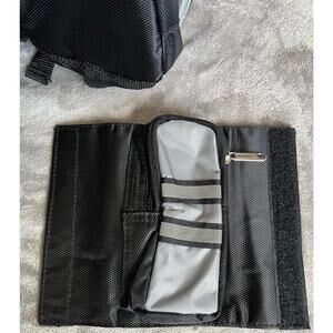 This sling or crossbody backpack by Fit to Fight comes with multiple compartments for carrying the most important essentials. Includes a detachable pouch and plastic holder for phone or music etc. Strongly stitched grab handle. Padded strap. Black and grey in color.