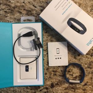 Nave blue Fitbit. Hardly used with box and all the information and charger. Band is a tad dingy.