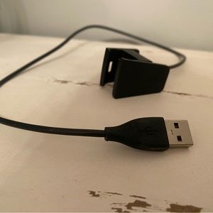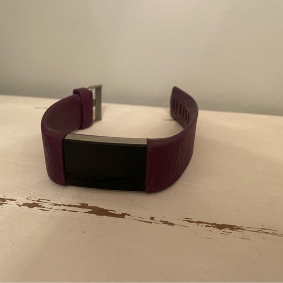 Fitbit Charge with purple band. It comes with the charger. You just need any USB block to plug it in. The Fitbit works great. Just download the Fitbit app on your smartphone to track your steps and fitness journey.