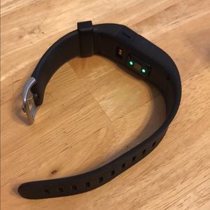 Small, black. Monitors heart rate, steps, floors, calories. Has exercise tracking functions that are super accurate. Details sleep quality also. This is in excellent used condition and comes with the charging cable.