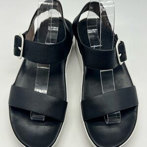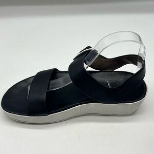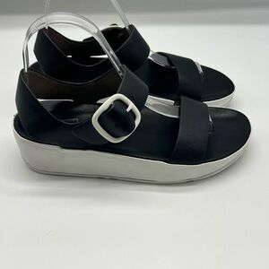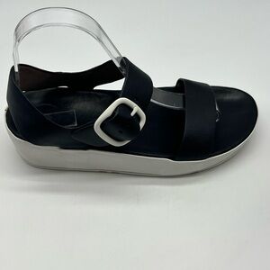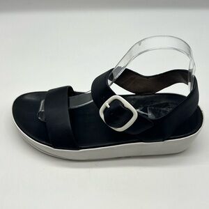 FitFLop - Bon Black Leather Adjustable Strappy Comfortable Wedge Size 7
