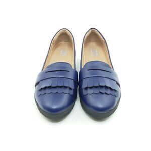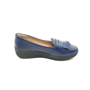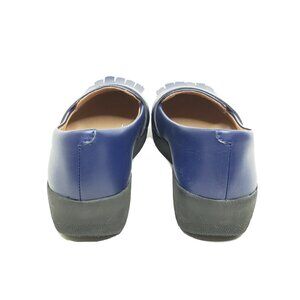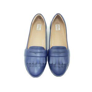 FitFlop Audrey Fringe Navy Blue Leather Loafer Slip On Comfort Shoes Women US 5