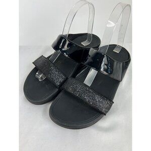 FitFlop B24 Womens Lulu Superglitz Black Slide Sandals sz 7