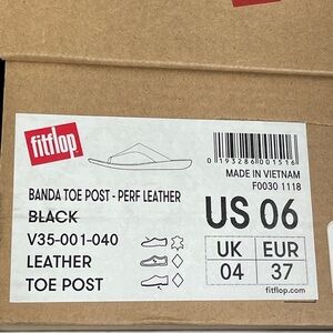 Brand new, never worn — purchased on Poshmark and they didn’t fit. FitFlop Banda black leather toe-post sandals in size 6, still in the box. Features ergonomic footbed, arch support, leather upper and lining, and flexible rubber sole. Great for travel, walking, and all-day comfort.
