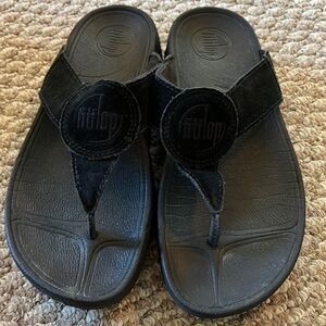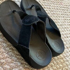 FitFlop Black Suede Thong Walking Sandals. Fits like 8-8.5