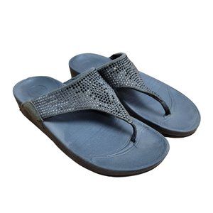 FitFlop Flare Gray Rhinestone Women's Thong Toe Post Wobble Sandals Size 9