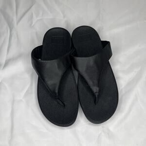 FitFlop LULU Leather Toe-Post Sandals Black, size US 7, Summer, Casual, Tropical