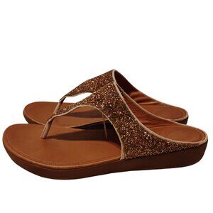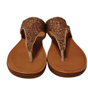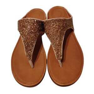 FitFlop Like New Sandals Rose Gold Copper Crystal Glitter Thongs Post Leather 8