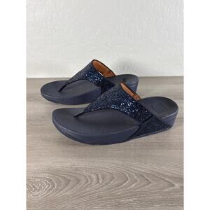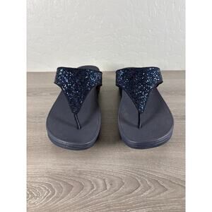 FitFlop LuLu Glitter Toe Thong Women’s Midnight Navy Sandal Size 10 EU 42 NWOB