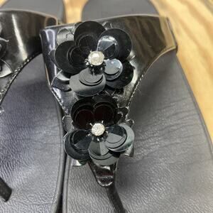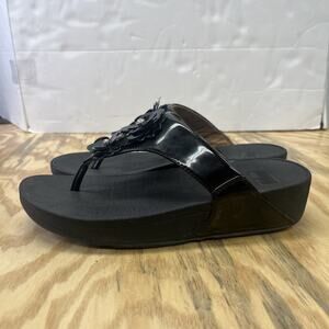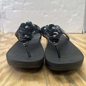 FitFlop Lulu Black Floral Bedazzled Lightweight Thong Sandals Women's Size 9