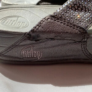FitFlop Lulu Rhinestone Thongs Flip Flops Gray Graphite Comfort Sandals Summer