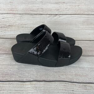 FitFlop Lulu Sequin Slides Womens Size 7 Sandals All Black