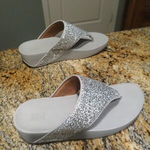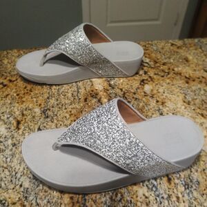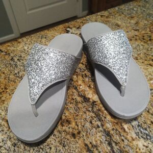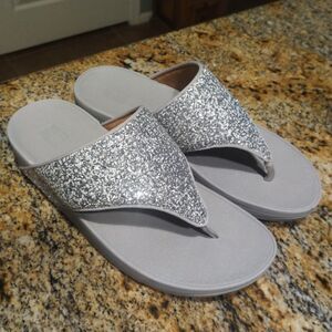 FitFlop Olive Glitter Mix Splash Toe-Post Sandals Silver Gray Women's Size 8