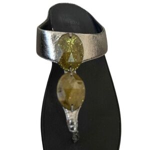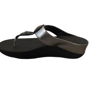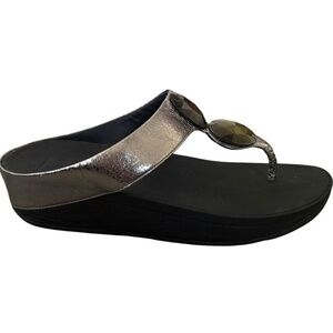 FitFlop Pierre Leather Wedge Thong Sandal Size US 9 Gold Metallic Large Stones